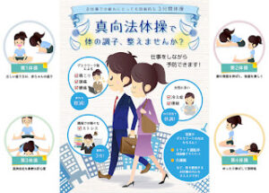 Der Screenshot von der offiziellen Website von Makkō-hō in Japan präsentiert das Wesentliche in einem etwas naiven zeitgenössischen japanischen Stil. Auch ohne Japanischkenntnisse kann man es anhand der Grafiken verstehen. Es handelt sich um vier 3-Minuten-Übungen, die Männern und Frauen gut tun, wenn sie im Beruf gestresst sind, sich niedergeschlagen fühlen oder unter einem Mangel an Lebensenergie leiden. Und dahinter verbirgt sich eine ganze Organisation mit verschiedenen Makkō-hō-Stufen, Gruppenkursen, die zu einem erschwinglichen Preis absolviert werden können: