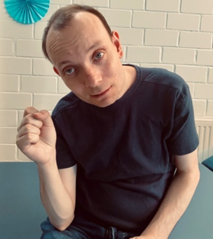 Mit Sascha arbeite ich schon seit etwa zehn Jahren. Er ist Mitte 30, hochgewachsen, schmal, mit ausgeprägter Skoliose. Er ist Autist. Er kann laufen, sehen, hören und sprechen – doch Blickkontakt meidet er, sondern blickt mit seinen großen Augen eher abwesend zur Seite. Seine Sprache besteht oft nur aus wenigen, sich immer wiederholenden Sätzen: